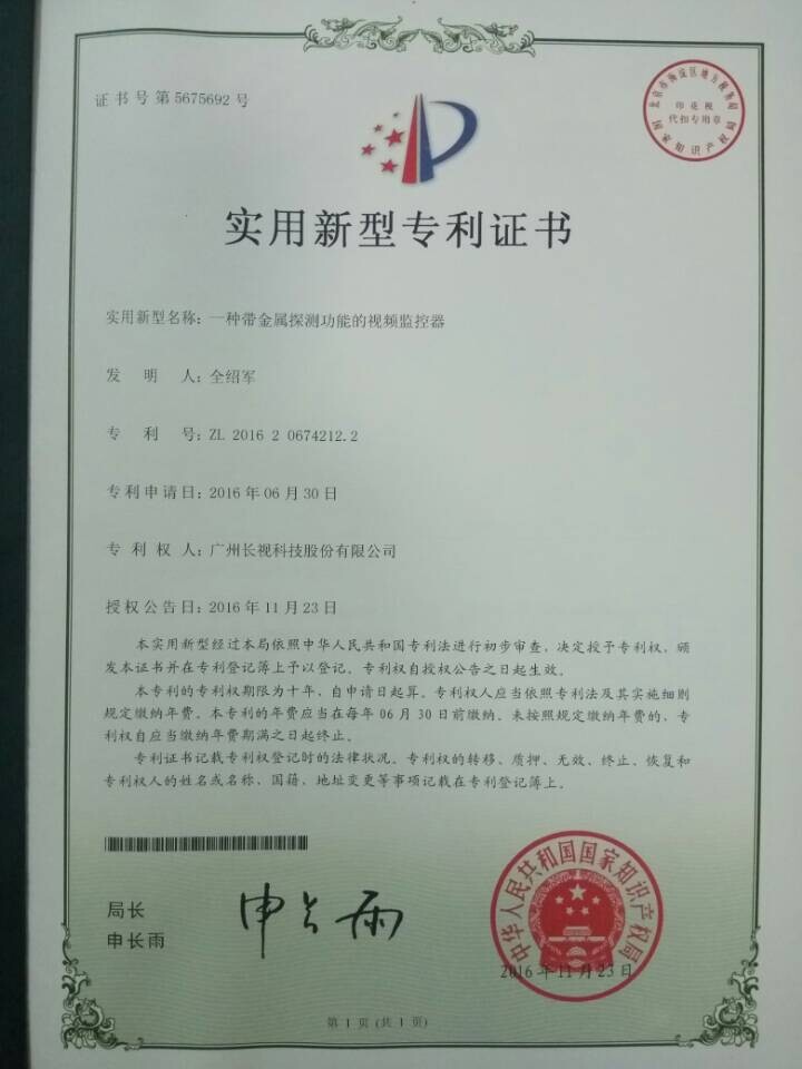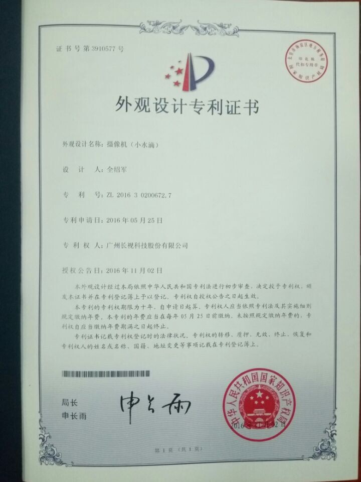 17年110月18日,长视科技公司喜获✃两采(cai)用(yong)一(yi)种新型国家高(gao)新产(chan)品合格证和有(you)一(yi)个的表面工(gong)作设想国家高(gao)新产(chan)品合格证。
