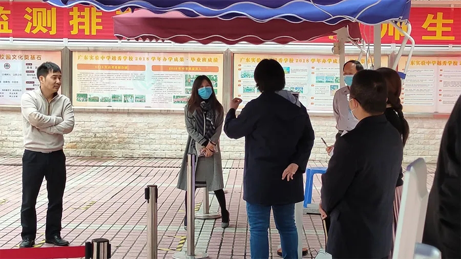 在装备(⛎bei)装置和数据录入(ru)等(deng)步骤实现(xian)后,咱们起头了AI人脸(lian)(lian)测(ce)温(wen)辨(bian)认(ren)(ren)终真(zhen)(zhen)个展(zhan)(zhan)现(xian)。11点(dian)摆布(bu),尝(chang)试中学迎来(lai)了教导局(ju)带(dai)领(ling)的(de)到临指点(dian),时代AI人脸(lian)(lian)测(ce)温(wen)辨(bian)认(ren)(ren)终端也获得了展(zhan)(zhan)现(xian)机遇(yu)。AI人脸(lian)(lian)测(ce)温(wen)辨(bian)认(ren)(ren)终端可以或许在0.5-1.3m规模(mo)内同时停(ting)止体温(wen)检测(ce)、人脸(lian)(lian)辨(bian)认(ren)(ren)和口罩辨(bian)认(ren)(ren),AI人脸(lian)(lian)测(ce)温(wen)辨(bian)认(ren)(ren)终真(zhen)(zhen)个表现(xian)也获得了教导局(ju)和黉舍带(dai)领(ling)的(de)承(cheng)认(ren)(ren)。