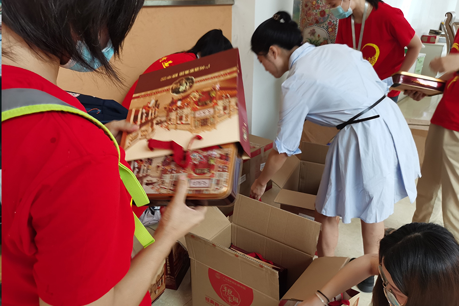 长视自愿者为办事工具现场散发微希望物质。值此中秋佳节行将到来,咱们也经心为各办事工具筹办了一份月饼,提早祝贺大师幸运健康。