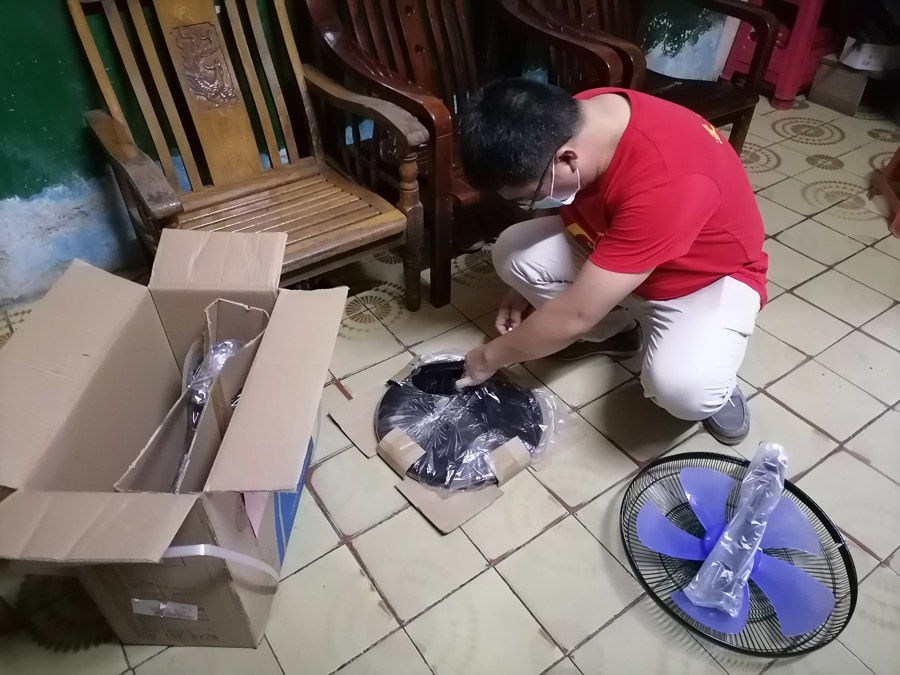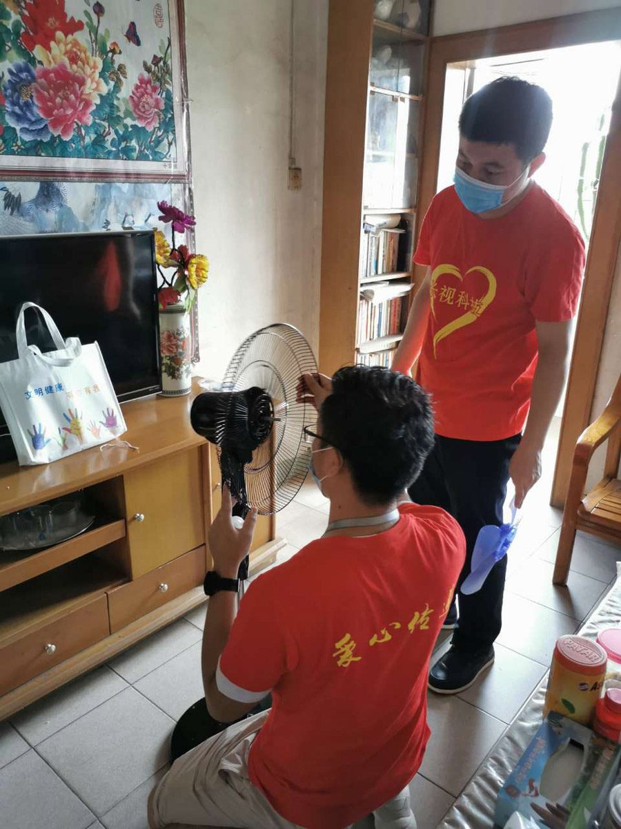 咱们的小火伴在现场给办事工具装置受赠物质。