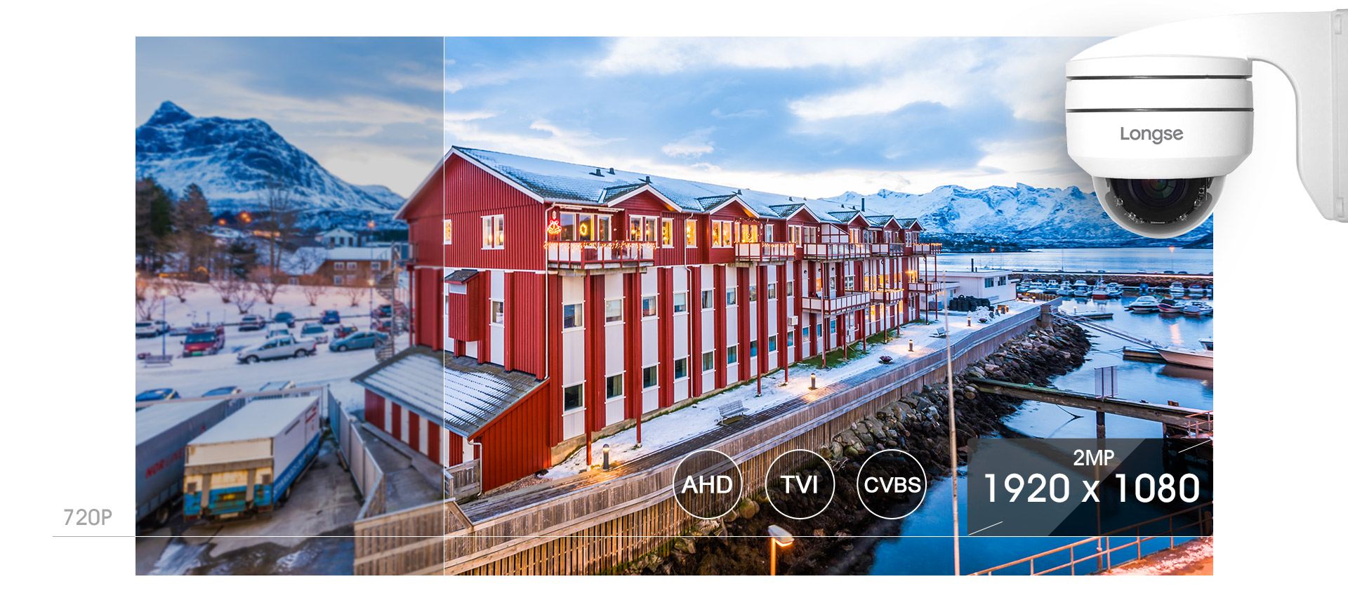 能以1080P的高清分辩率输出温和、细致的画面。摄像机撑持3种旌旗灯号,AHD、HD-TVI、CVBS,