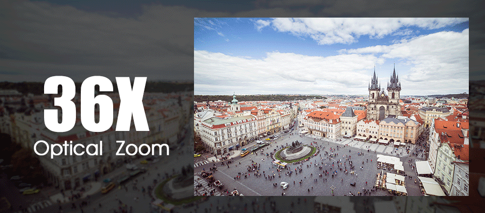 并以4.6-165mm的焦距,镜头画面在气候杰出环境下,可阐扬最大功效,可延长至90米远的处所,