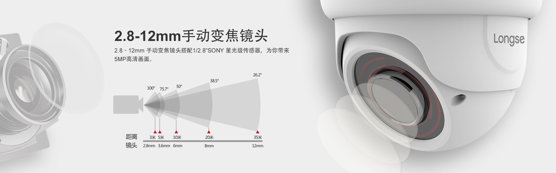 长视5百万手动变焦半圆机,小机型,大功效